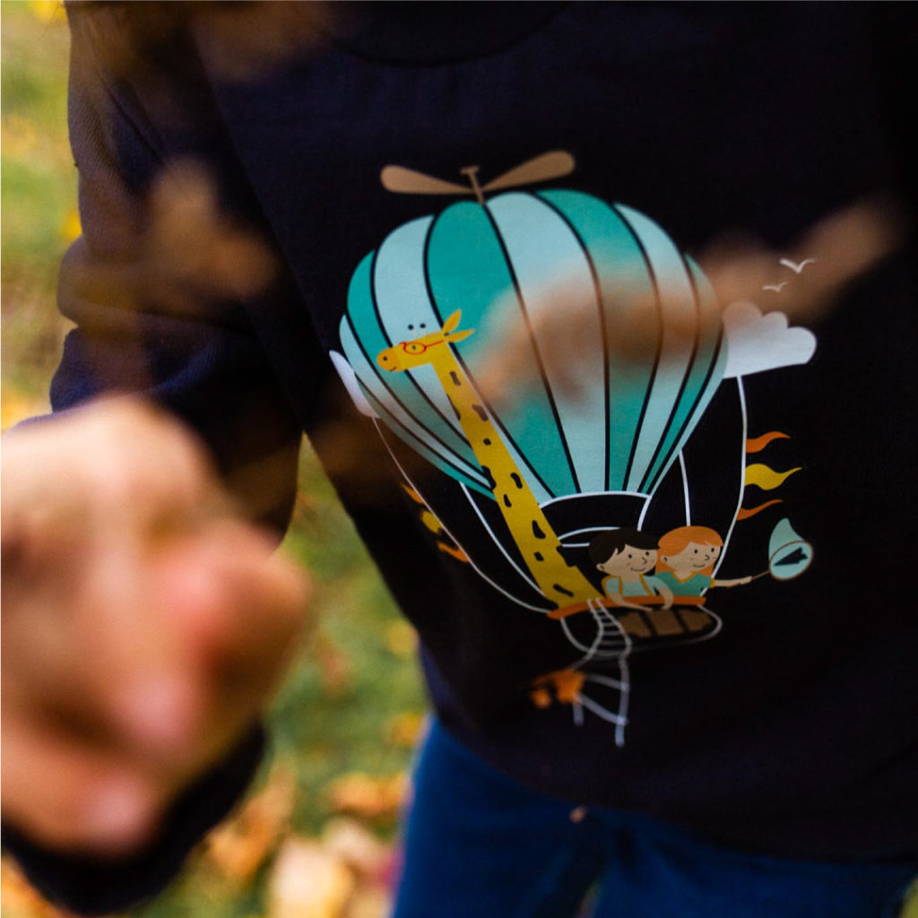 Un girafe dans une montgolfière sur un t-shirt, un chien dans une fusée sur un sweat, et des pyjamas qui murmurent des histoires avant de s’endormir. Ici, les vêtements deviennent des compagnons d’aventure, pour les petits curieux et grandes rêveuses de 2 à 8 ans.