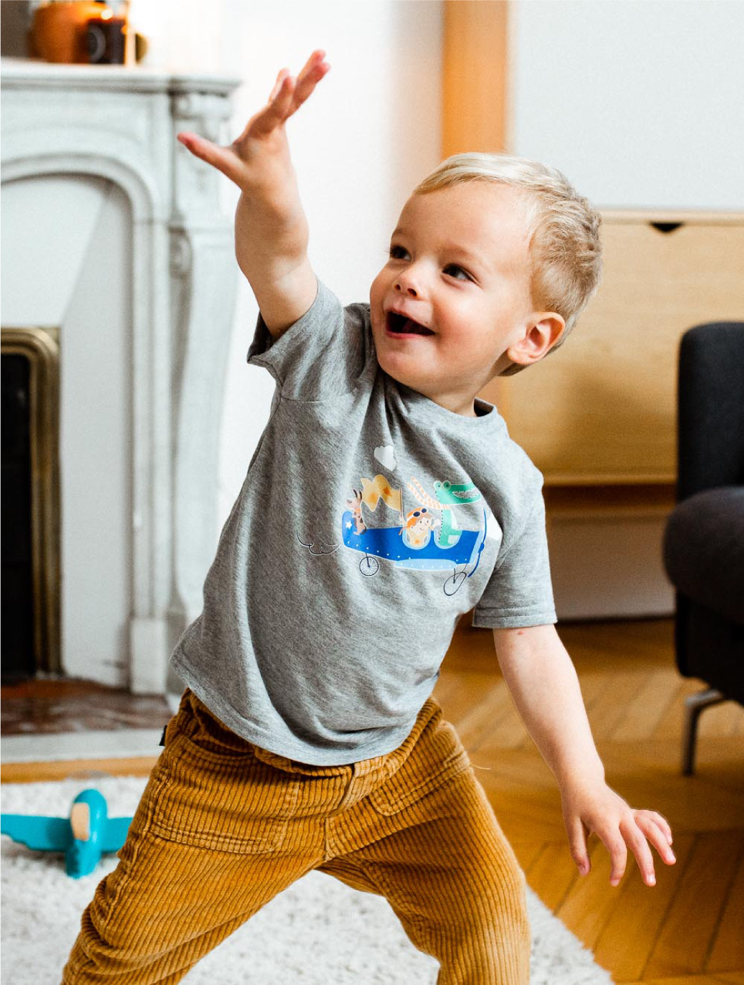 Coton bio certifié, fabrication 100 % française, des imprimés colorés, joyeux et responsables. Une mode qui dure, qui s’amuse, et qui fait briller les yeux.